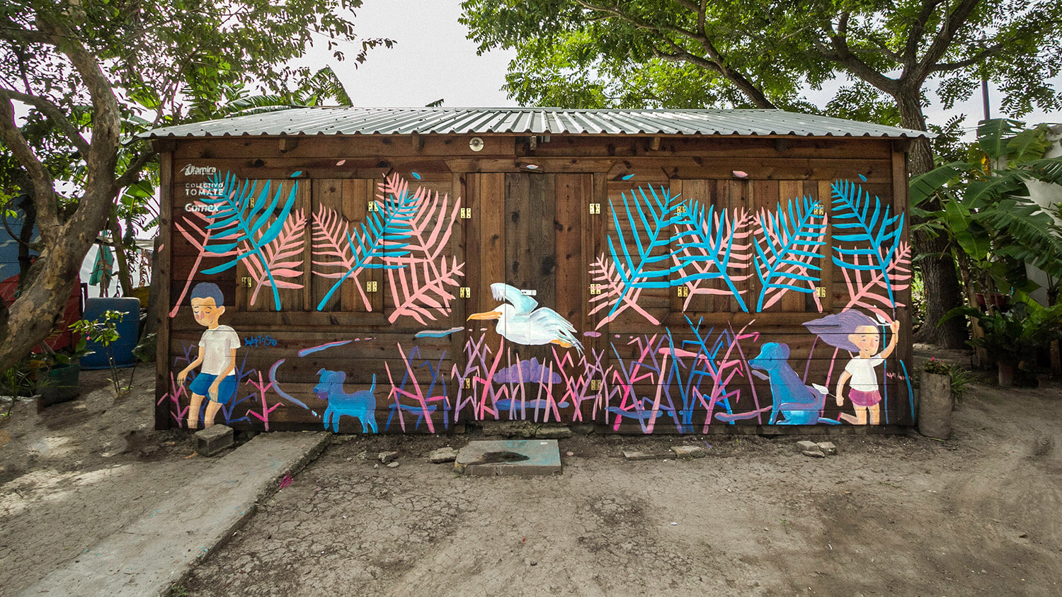 Los 23 artistas urbanos que contribuyeron a Ciudad Mural Altramira, abordaron los oficios predominantes en la zona como la pesca y la agricultura, así como las memorias familiares, las historias identitarias y el importante llamado a la preservación y conservación de las áreas naturales.