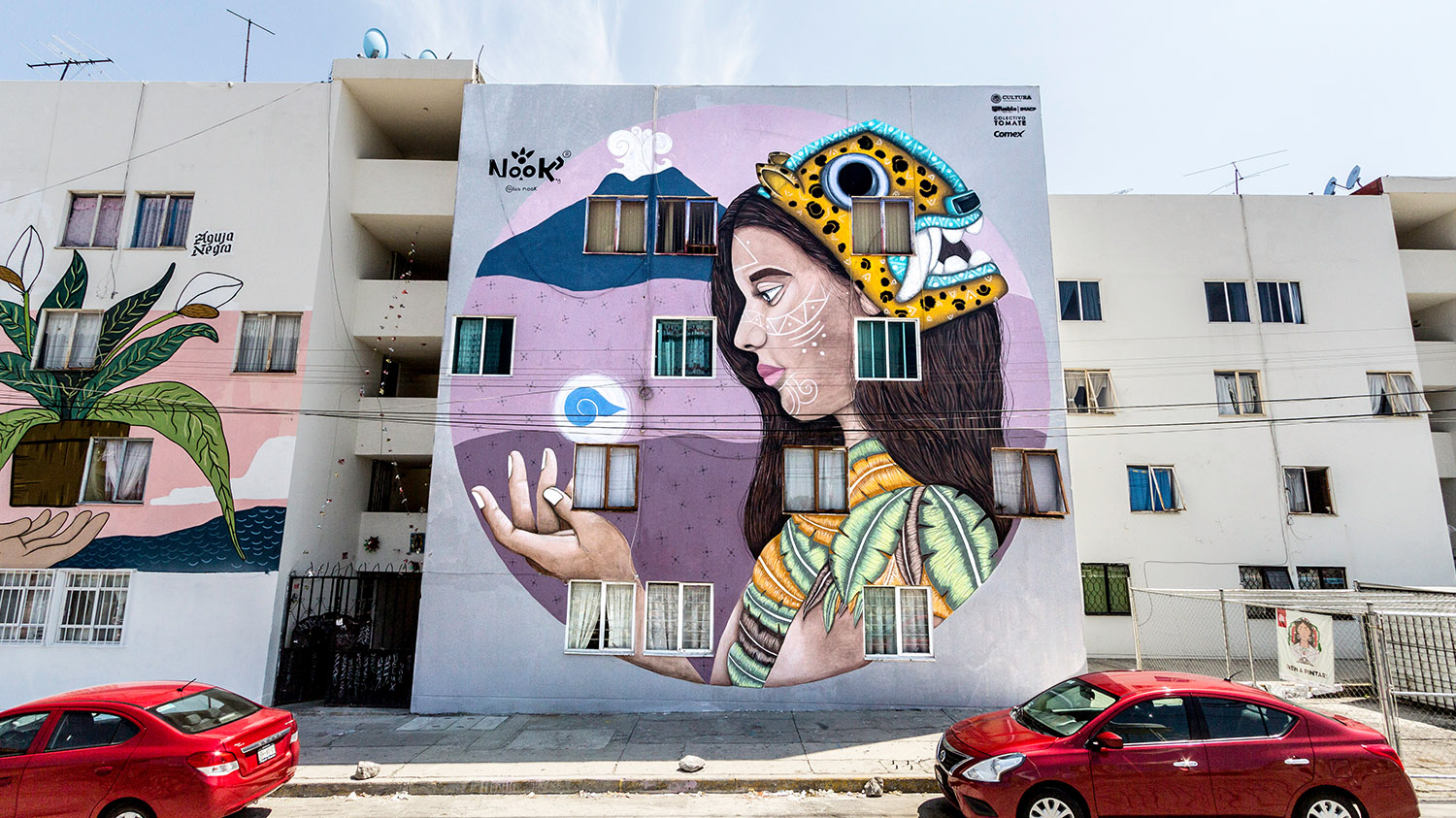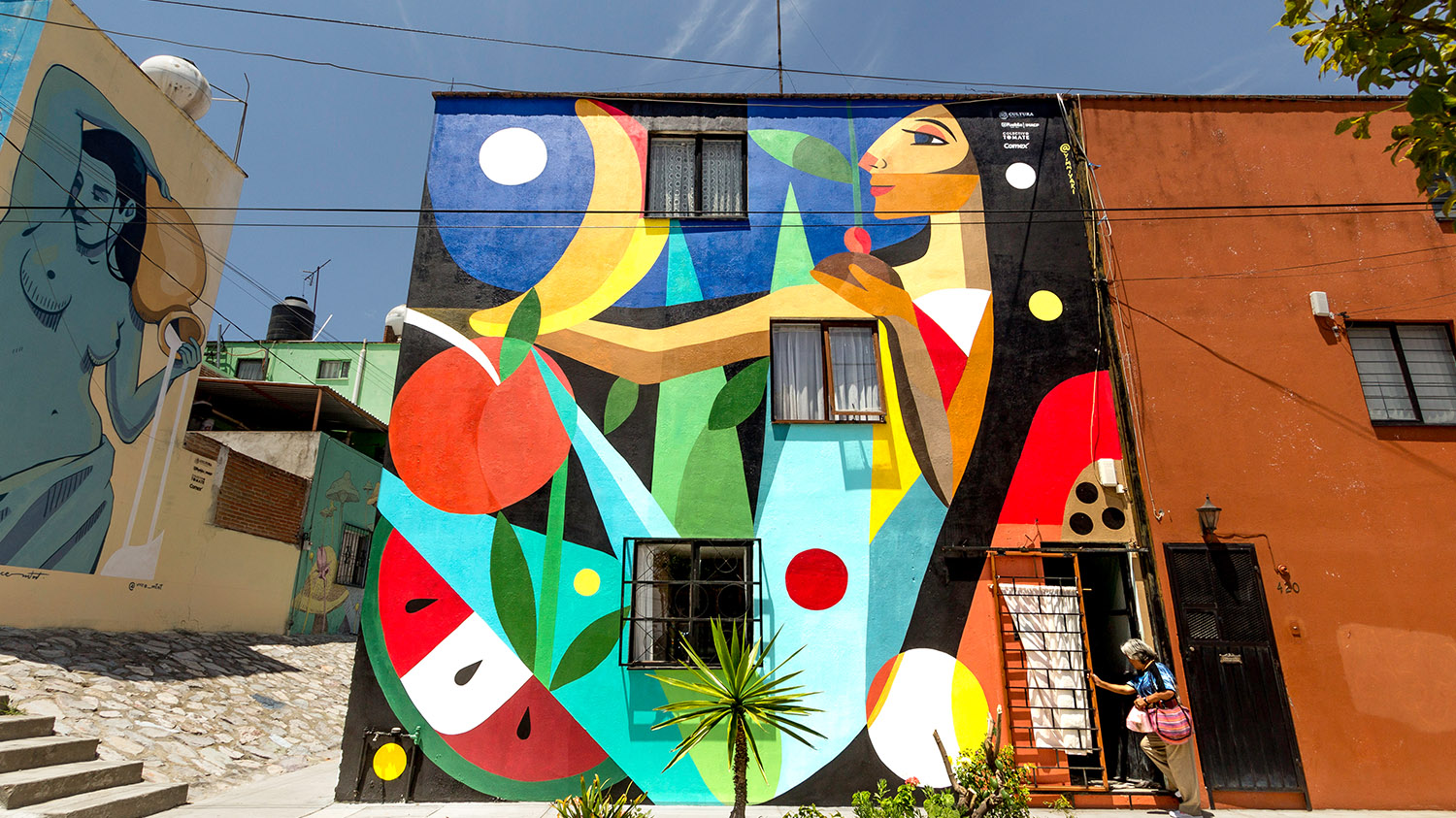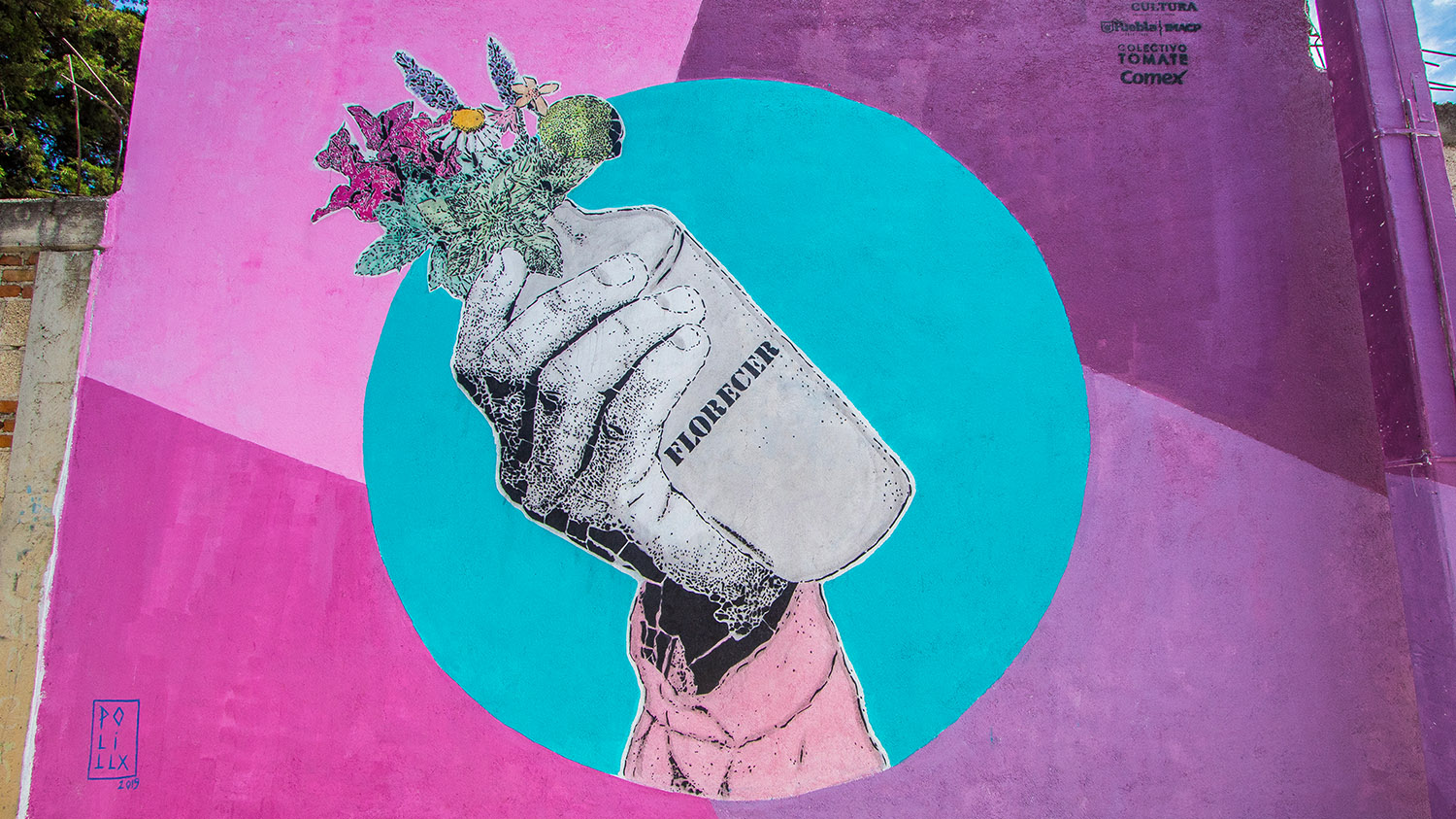 Ciudad Mural llegó a Puebla a dar ‘voz’ a la historia y a las familias de tres comunidades: la unidad habitacional La Margarita, y dos pueblos rurales, San Andrés Azumiatla y La Resurrección. La invitación para el Colectivo Tomate la hizo el Instituto Municipal de Arte y Cultura, se contó con el apoyo de la Secretaría de Cultura mediante el Programa Festivales Culturales y Artísticos (PROFEST); y se sumaron México Bien Hecho y 46 artistas, principalmente poblanos. La pinta de 95 murales fue el pretexto para interactuar con los vecinos y escuchar sus inquietudes, anécdotas y tradiciones, que sirvió para inspirar a los artistas, pero también para fortalecer la identidad de las tres colonias y promover la relación entre vecinos; una manera de combatir la violencia y recuperar espacios públicos. Personas de 90 familias se involucraron en las distintas fases del proyecto, entre ellas, Doña Domi, habitante de San Andrés, quien pidió: “Yo quiero que en nuestros muros se reflejen los usos y costumbres de nuestra comunidad, estaré muy agradecida que así se haga”. Y no solo se cumplió el deseo de Doña Domi, Ciudad Mural Puebla se convirtió en un festival con conciertos, teatro participativo y hasta un ‘bailongo’ con la Sonora Dinamita. Al principio, los vecinos de las colonias se mostraban huraños pero, como cuenta Meztli Magic, uno de los artistas: “con los murales se alegró un poco la zona y la gente empezó a salir de sus casas”. ¡Un logro más para Ciudad Mural!
