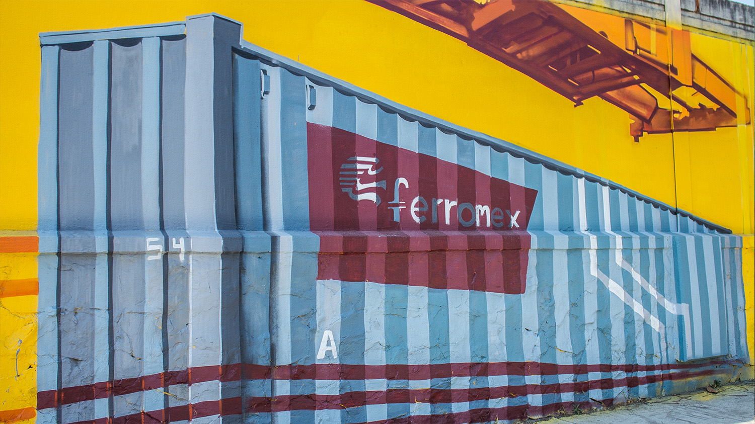 Las bardas que delimitan las instalaciones de Ferromex, ubicadas en la colonia Moderna en Guadalajara, Jalisco, resguardan los patios de operación de la empresa más importante en transporte de carga ferroviaria de México. Por sus puertas, entran y salen productos de diversas partes del mundo que van desde granos, electrodomésticos y materias primas, hasta miles de automóviles, entre muchos otros productos. Fue en estas bardas que se realizó el “Corredor del Color”, un proyecto mural que abarcó 2,500 m2 de arte urbano de representaciones de la actividad ferroviaria en nuestro país, a través 24 escenas pintadas en el muro perimetral de Ferromex, ubicado sobre Av. Washington, desde Av. Mariano Otero, hasta Aav. Federalismo. Bajo la dirección artística del artista urbano, Secreto Rebollo, más de 100 personas colaboraron en la realización del proyecto que ilustra la historia presente del ferrocarril en el siglo XXI. Para concretar el proyecto se requirieron poco más de 3,590 litros de pintura con los que se embelleció la avenida creando un espacio agradable tanto para los peatones, como para los que pueden disfrutar de los murales mientras circulan en sus automóviles.