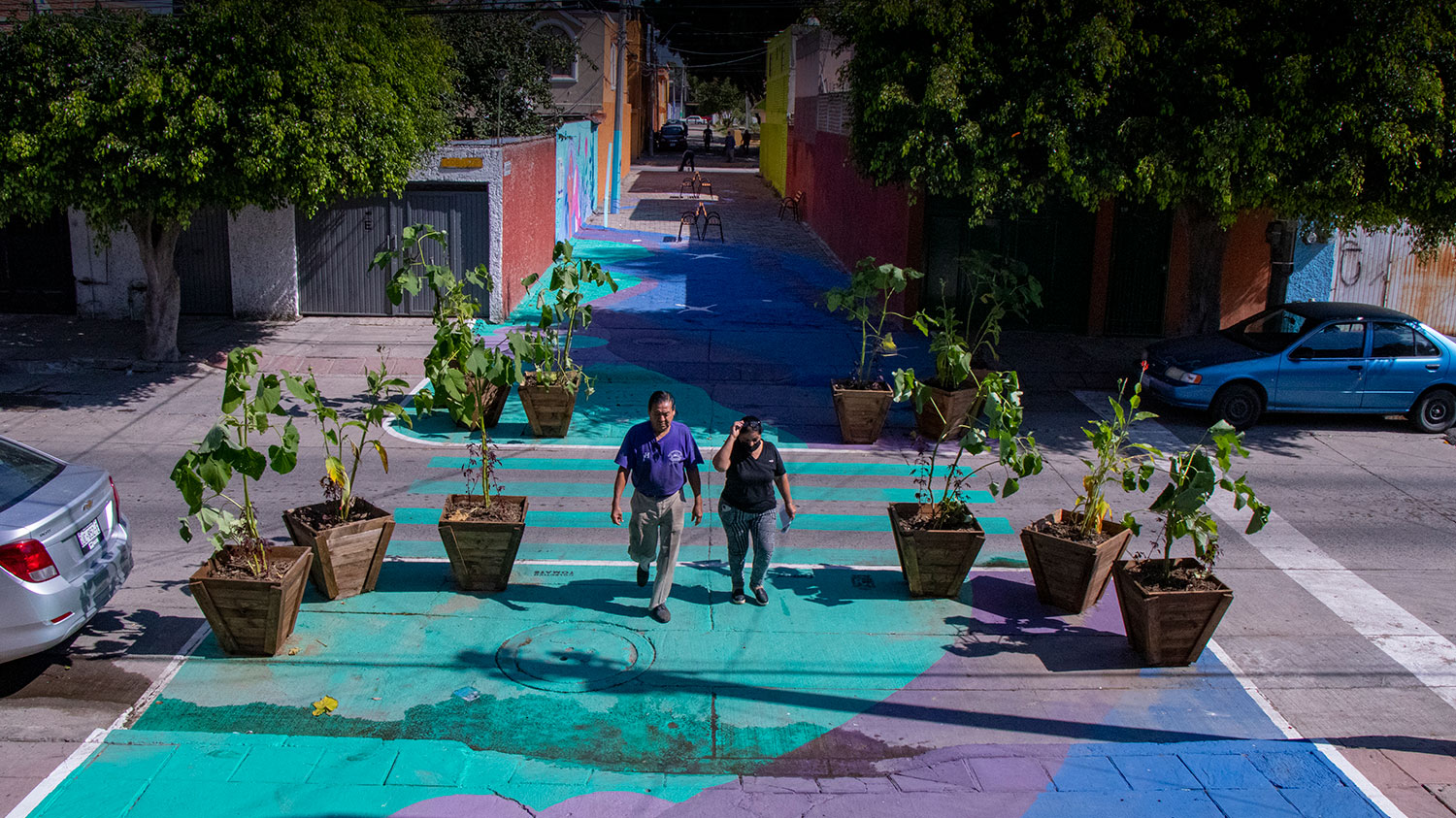 La suma de esfuerzos se realizó para transformar vialidades a través de intervenciones del espacio urbano con el objetivo de reducir la velocidad, de integrar nuevos espacios verdes y de ser incluyentes con todas las personas que transitan por las calles de esa colonia guanajuatense.