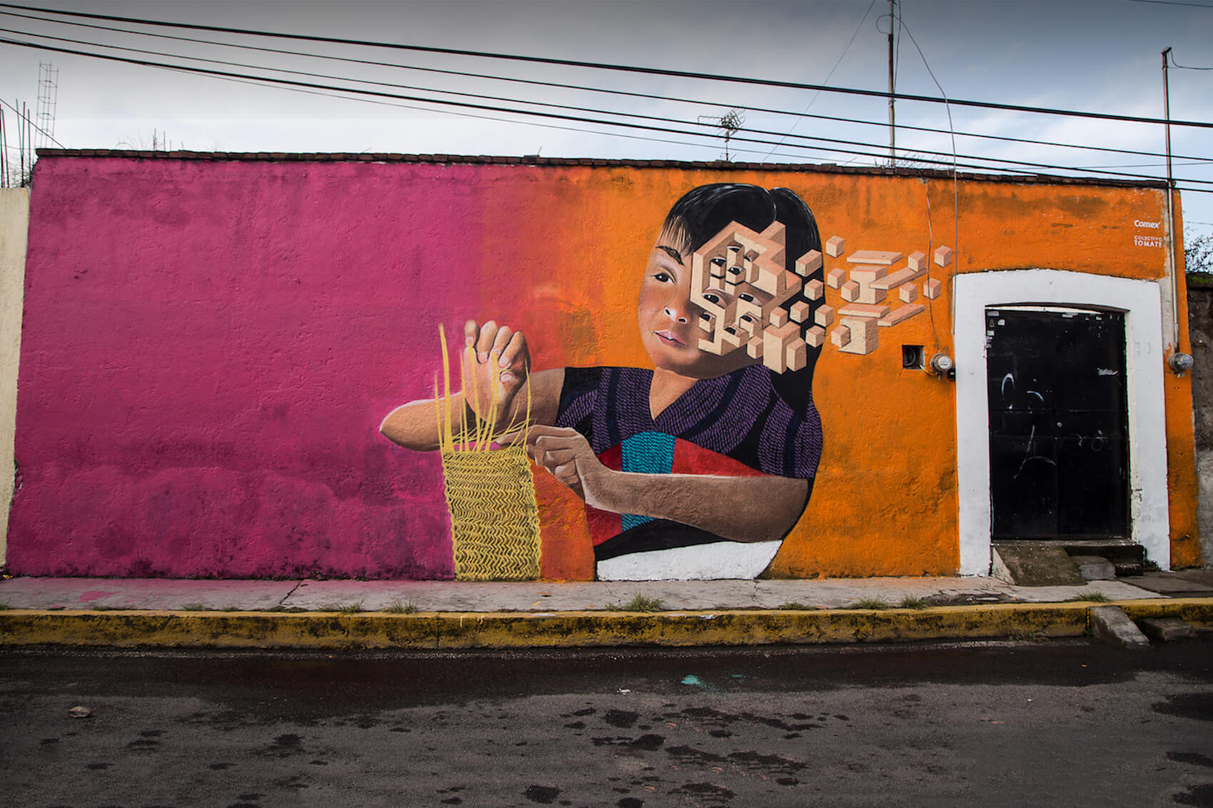 Ciudad Mural Cholula fue la primera edición en la que PPG Comex se sumó a la sinergia de Colectivo Tomate para llevar el proyecto de Ciudad Mural a todos los rincones de la República Mexicana. Ciudad Mural parte de un proceso de mediación comunitaria profunda, en la que a través de talleres y distintas actividades participativas, se fomenta la autogestión y la pacificación de conflictos vecinales a través del arte mural urbano.
