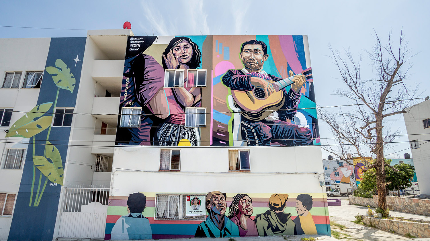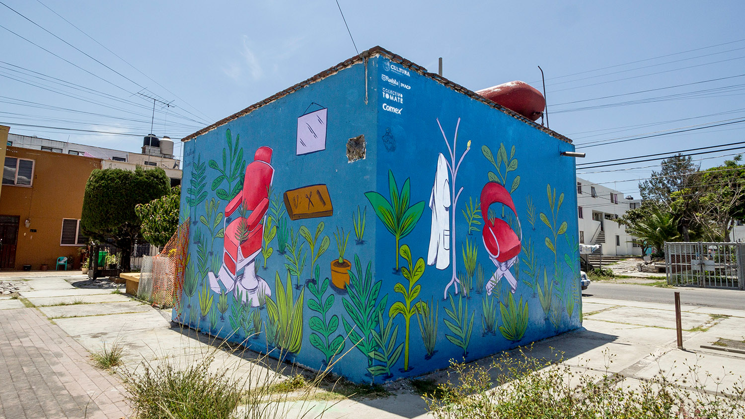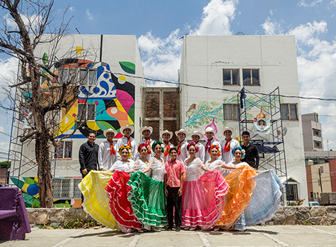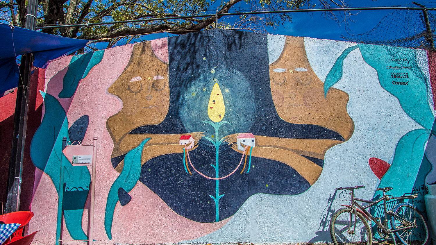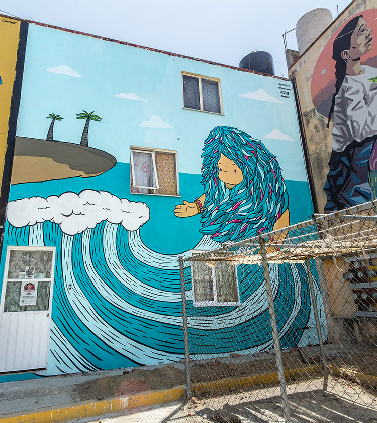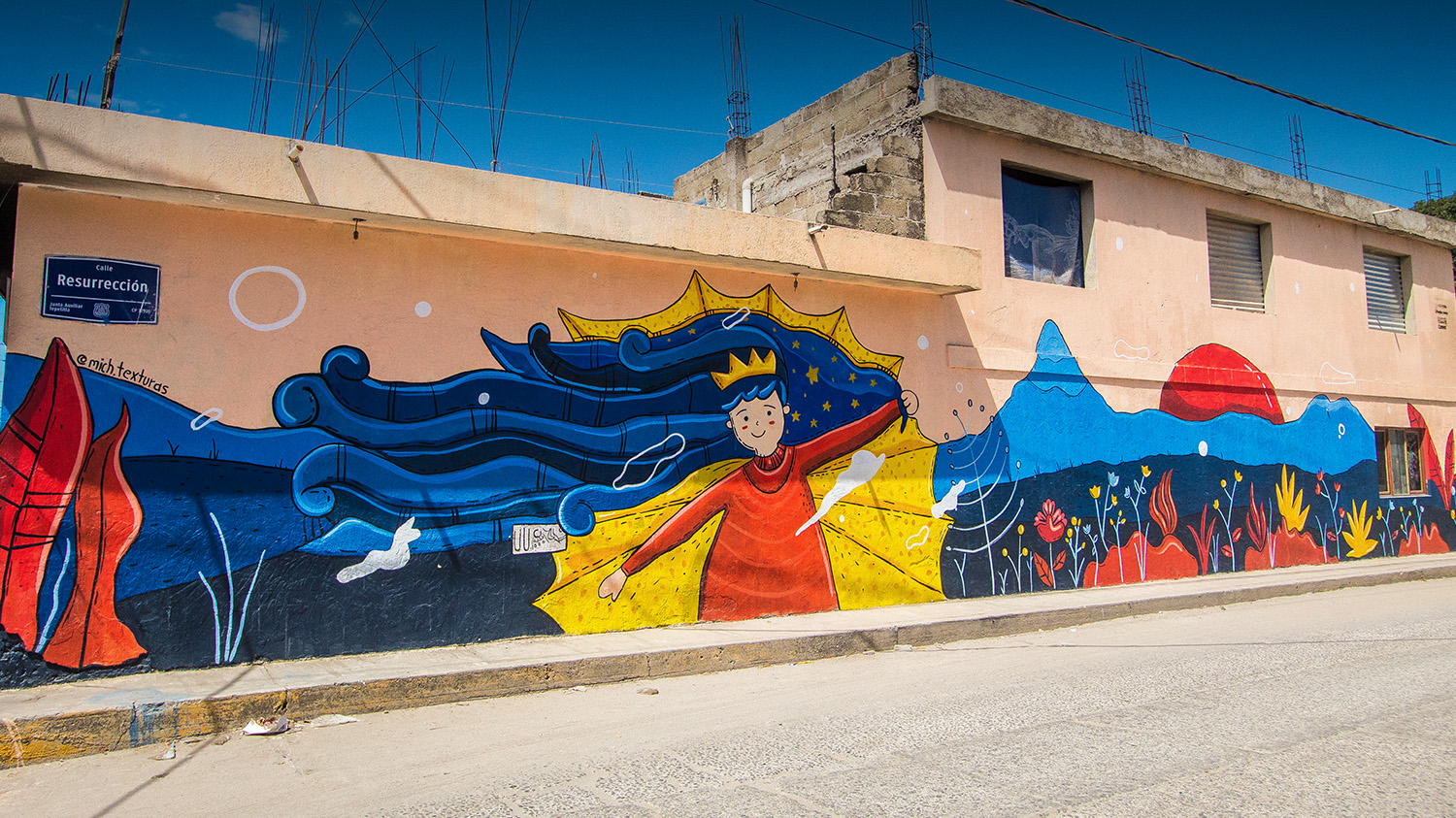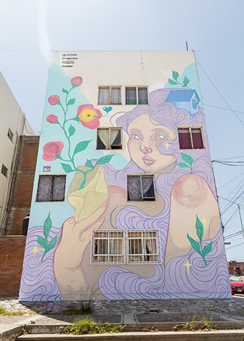 Ciudad Mural llegó a Puebla a dar ‘voz’ a la historia y a las familias de tres comunidades: la unidad habitacional La Margarita, y dos pueblos rurales, San Andrés Azumiatla y La Resurrección. La invitación para el Colectivo Tomate la hizo el Instituto Municipal de Arte y Cultura, se contó con el apoyo de la Secretaría de Cultura mediante el Programa Festivales Culturales y Artísticos (PROFEST); y se sumaron México Bien Hecho y 46 artistas, principalmente poblanos. La pinta de 95 murales fue el pretexto para interactuar con los vecinos y escuchar sus inquietudes, anécdotas y tradiciones, que sirvió para inspirar a los artistas, pero también para fortalecer la identidad de las tres colonias y promover la relación entre vecinos; una manera de combatir la violencia y recuperar espacios públicos. Personas de 90 familias se involucraron en las distintas fases del proyecto, entre ellas, Doña Domi, habitante de San Andrés, quien pidió: “Yo quiero que en nuestros muros se reflejen los usos y costumbres de nuestra comunidad, estaré muy agradecida que así se haga”. Y no solo se cumplió el deseo de Doña Domi, Ciudad Mural Puebla se convirtió en un festival con conciertos, teatro participativo y hasta un ‘bailongo’ con la Sonora Dinamita. Al principio, los vecinos de las colonias se mostraban huraños pero, como cuenta Meztli Magic, uno de los artistas: “con los murales se alegró un poco la zona y la gente empezó a salir de sus casas”. ¡Un logro más para Ciudad Mural!