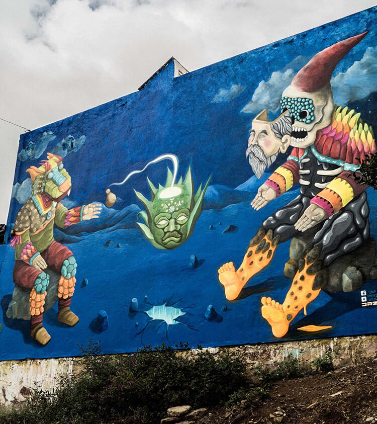 Conocida principalmente por su actividad minera, la capital zacatecana recibió con los brazos abiertos al proyecto de Ciudad Mural Zacatecas que trabajó directamente con el barrio de Tlacuitlapan, lugar caracterizado por su riqueza en pulque y platillos típicos.