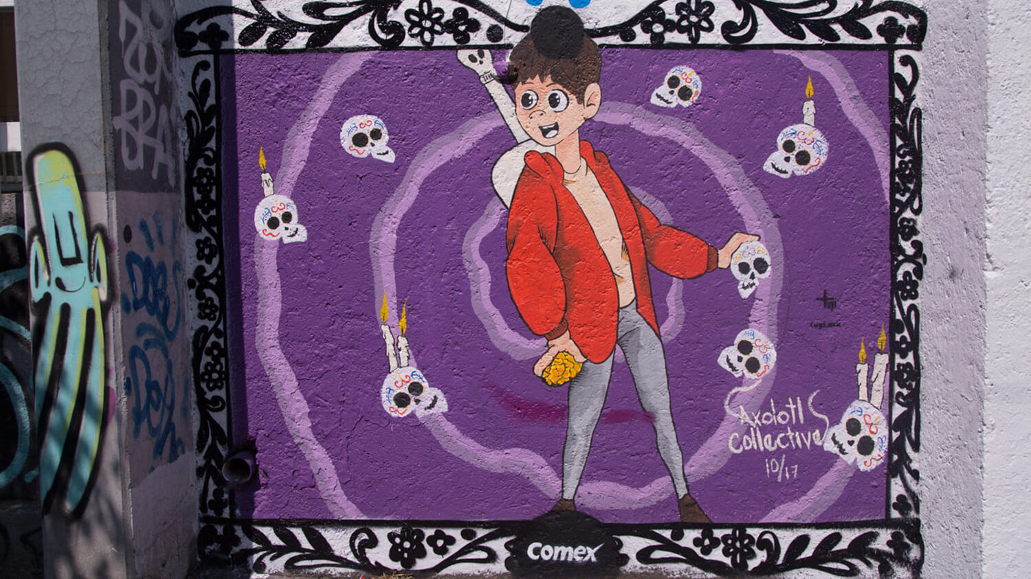 Con motivo del estreno de la película COCO en la Ciudad de México, las calles de la colonia Nápoles, Condesa, Roma Norte, San Miguel Chapultepec y Escandón fueron invadidas por los simpáticos personajes de la película de Disney Pixar. Alrededor de 90 litros de pintura Comex cubrieron 317 m2 de murales que enaltecieron la tradición mexicana que cada año conmemora el Día de Muertos.