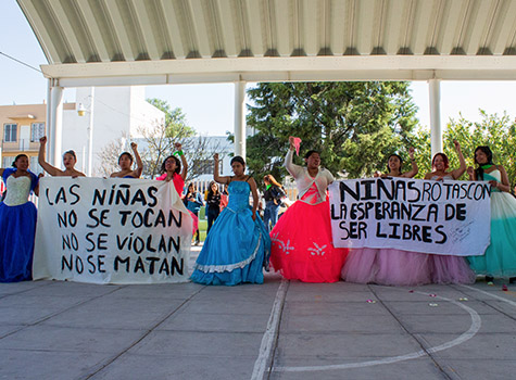 Además de la pinta, las chicas de la preparatoria Francisco Villa tuvieron toda una jornada contra la violencia machista, presentaron el performance “Quinceañera”, usando vestidos de XV años bailaron un vals y exigieron: “Las niñas no se tocan, no se matan, no se violan”. Luego se les unieron otras alumnas para corear “Un violador en tu camino”.