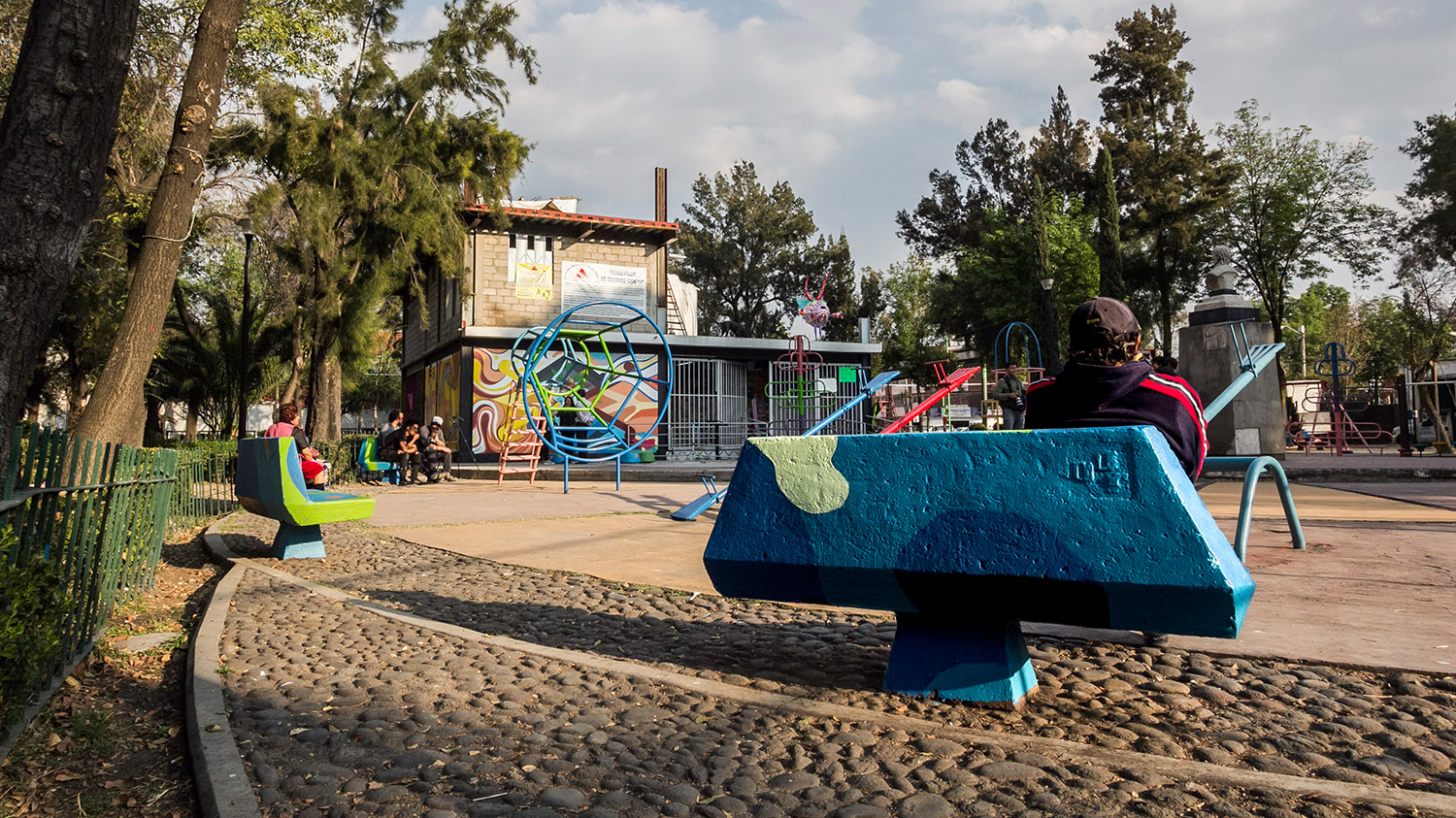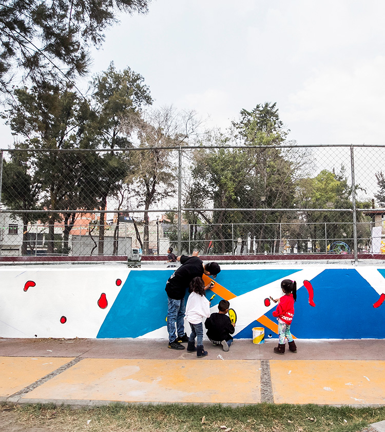 Los artistas JM, Humano Carlos y Pablo Quetzal, con la ayuda de los vecinos, llenaron de color y lograron rehabilitar el Parque Popular Cuatro Vientos, ubicado en Peralvillo.