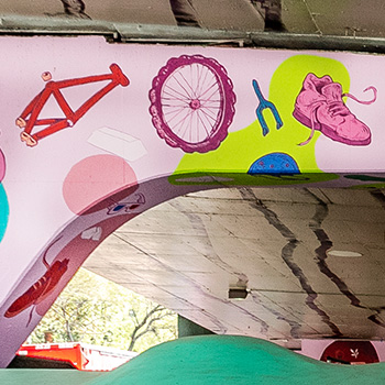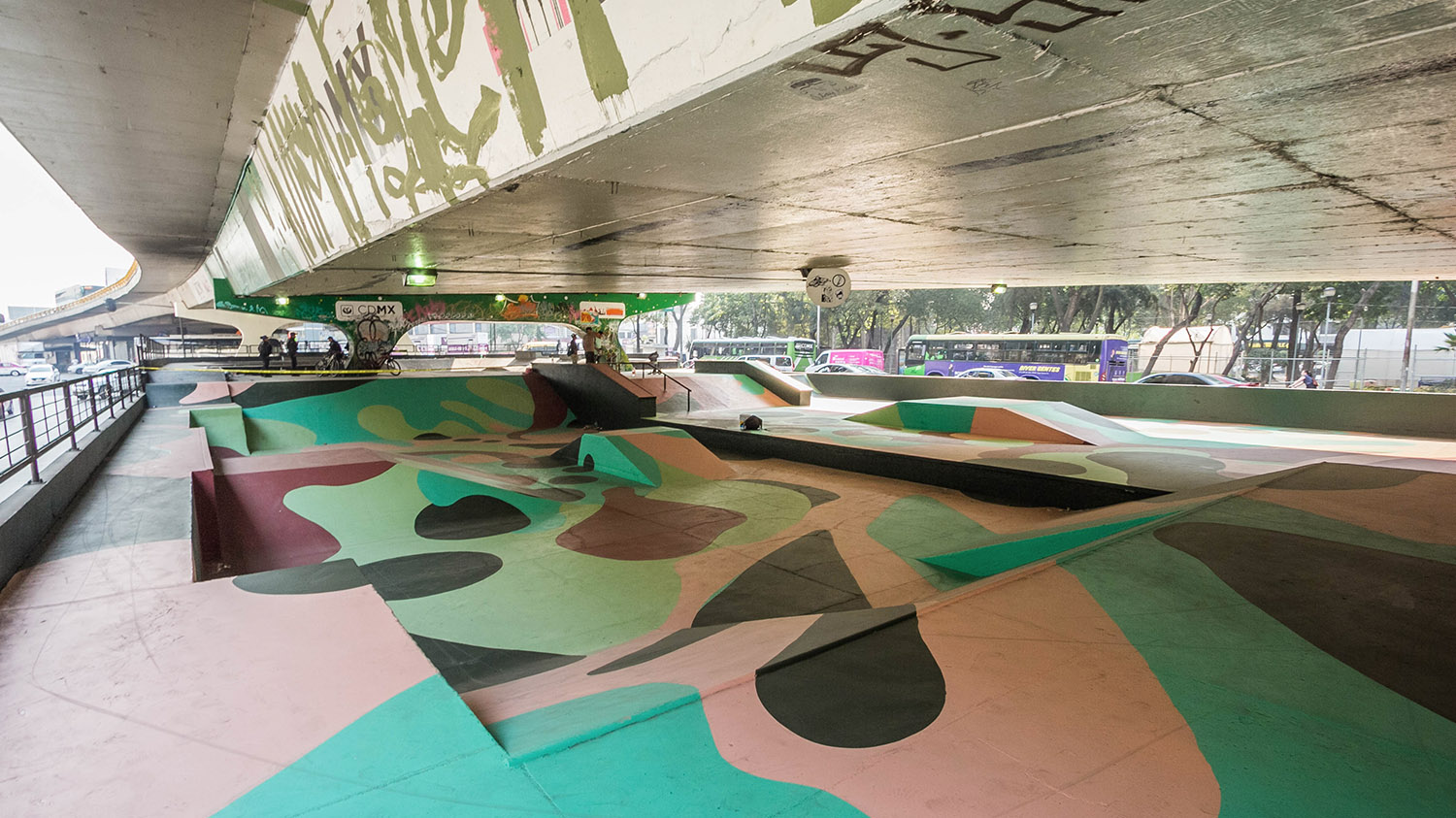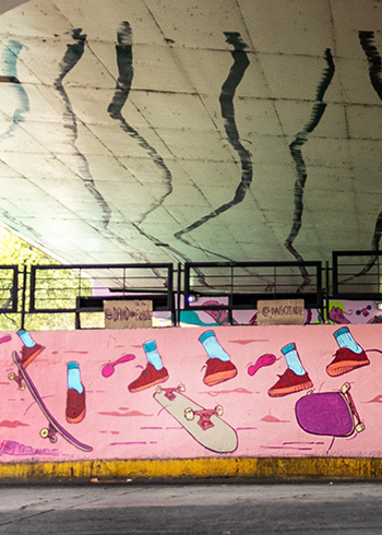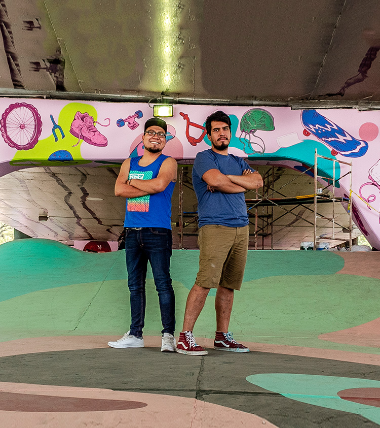 Los trazos de la pista y los murales que realizaron David No Existe y Dagos tienen como objetivo hacer más emocionantes las acrobacias de los skates y BMX, pero también más ameno el paso de peatones y automovilistas.